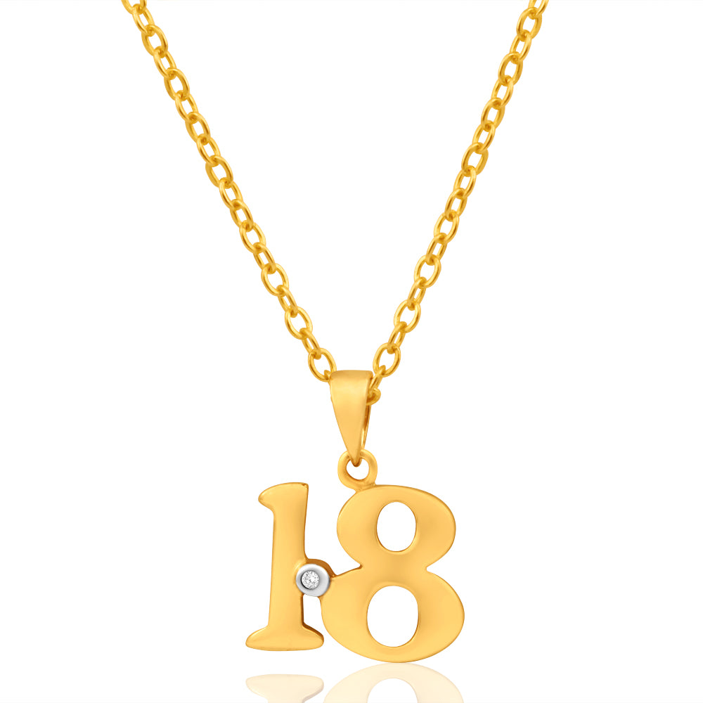 9ct Yellow Gold "18" Pendant Set with 1 Brilliant Diamond