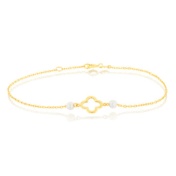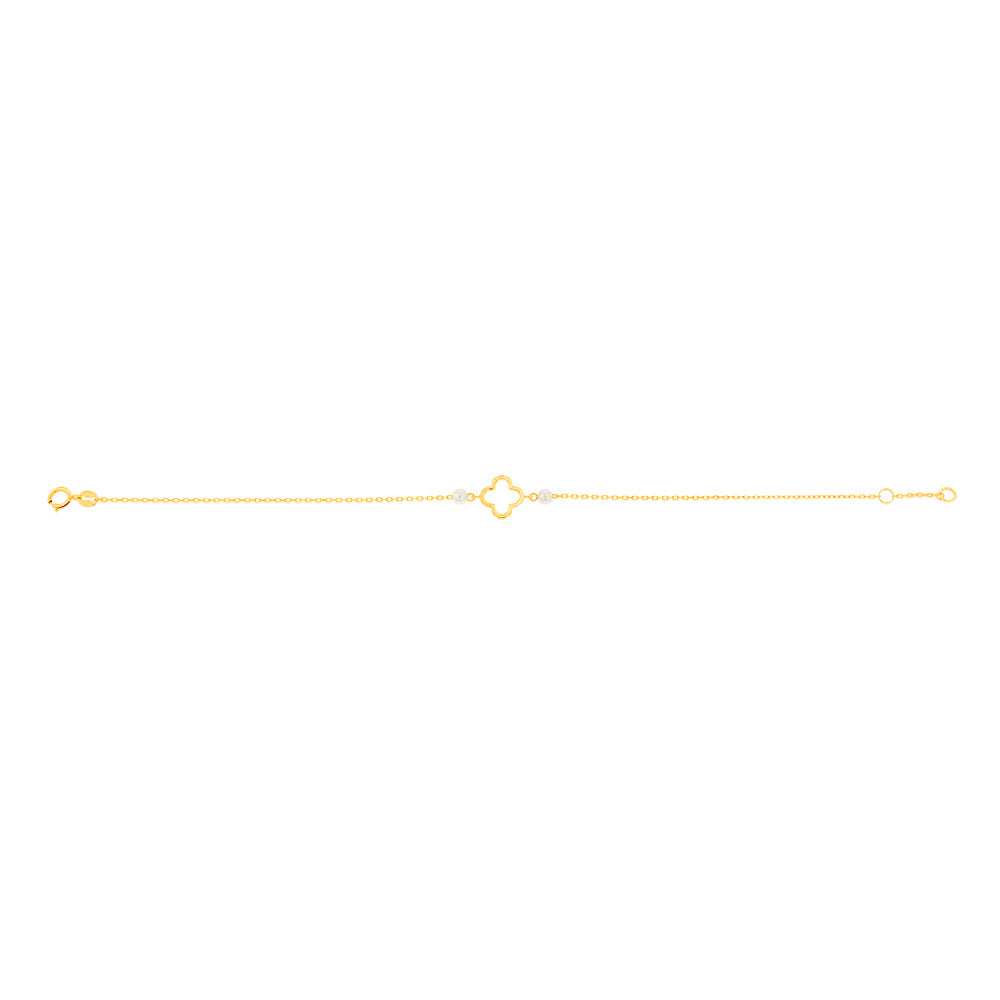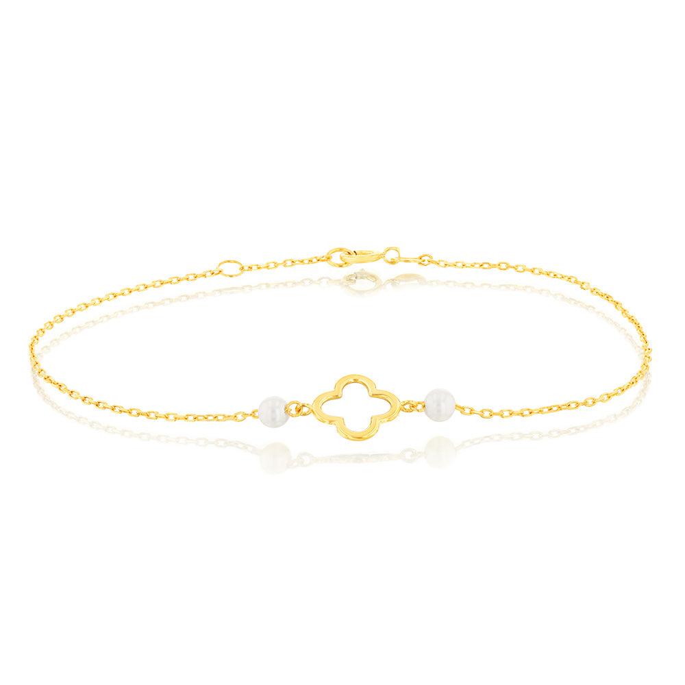 9ct Yellow Gold 19.10cm Leaf Clover and Pearl Bracelet