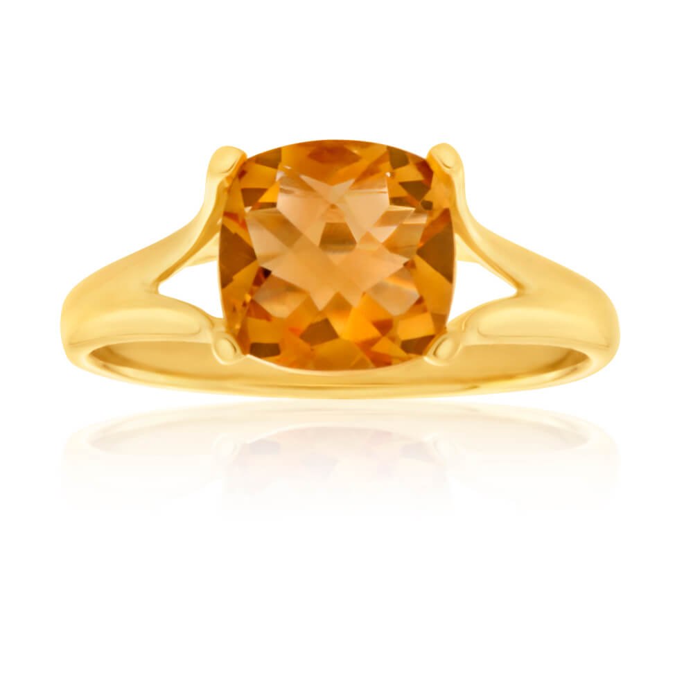 9ct Yellow Gold 2ct Cushion Cut Citrine Ring