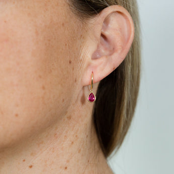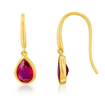 9ct Yellow Gold 2.00ct Natural Enhanced Ruby Pear Drop Earrings