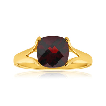 9ct Yellow Gold 2.85ct Cushion Cut Garnet Ring