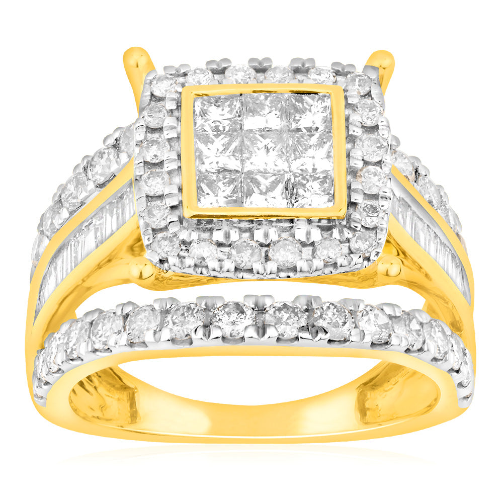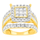 9ct Yellow Gold 2 Carat Diamond Cushion Shape Cluster Ring