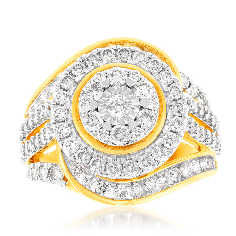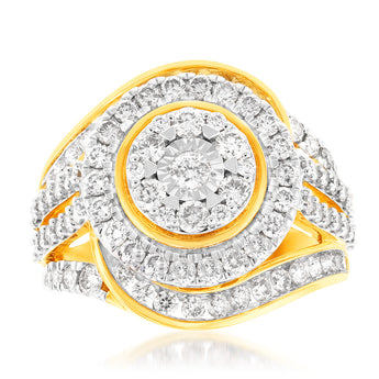 9ct Yellow Gold 2 Carat Diamond Ring with 99 Brilliant Cut Diamonds