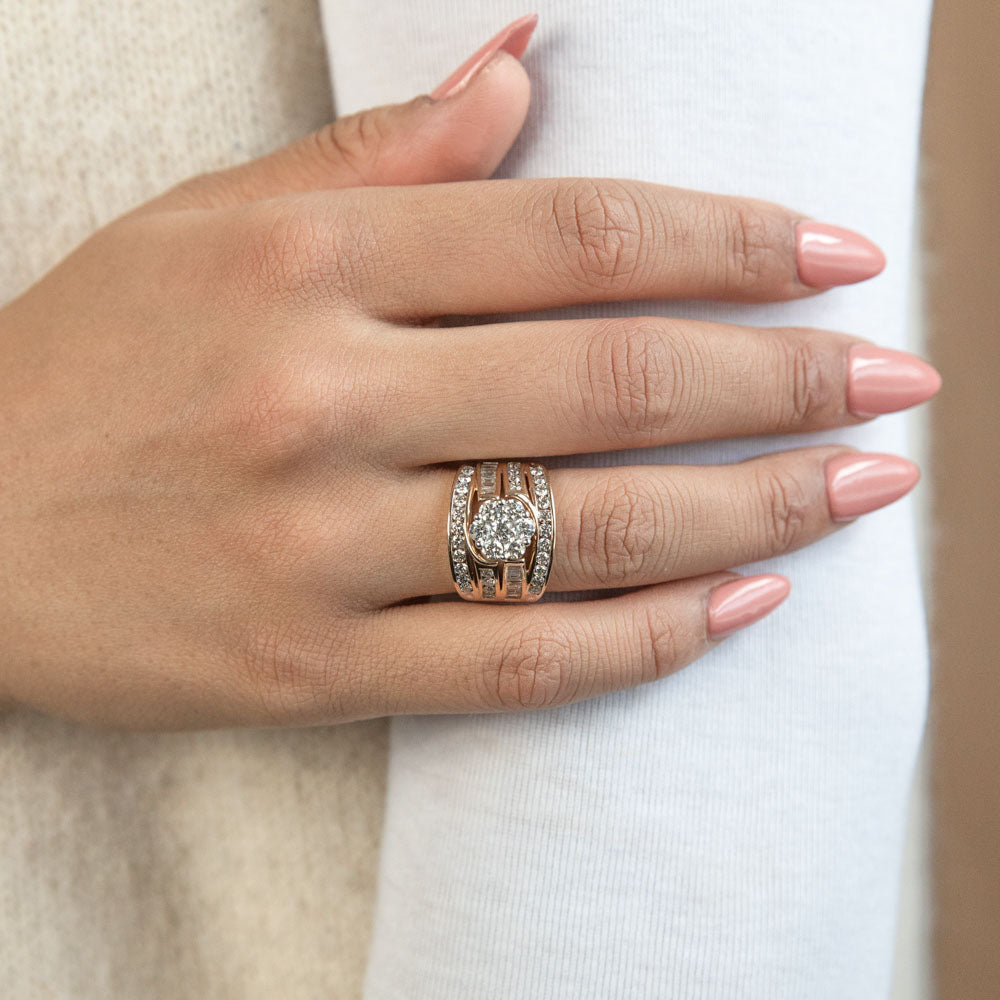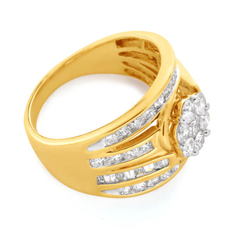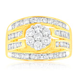 9ct Yellow Gold 2 Carat Diamond Ring with Beautiful Brilliant and Tapered Diamonds