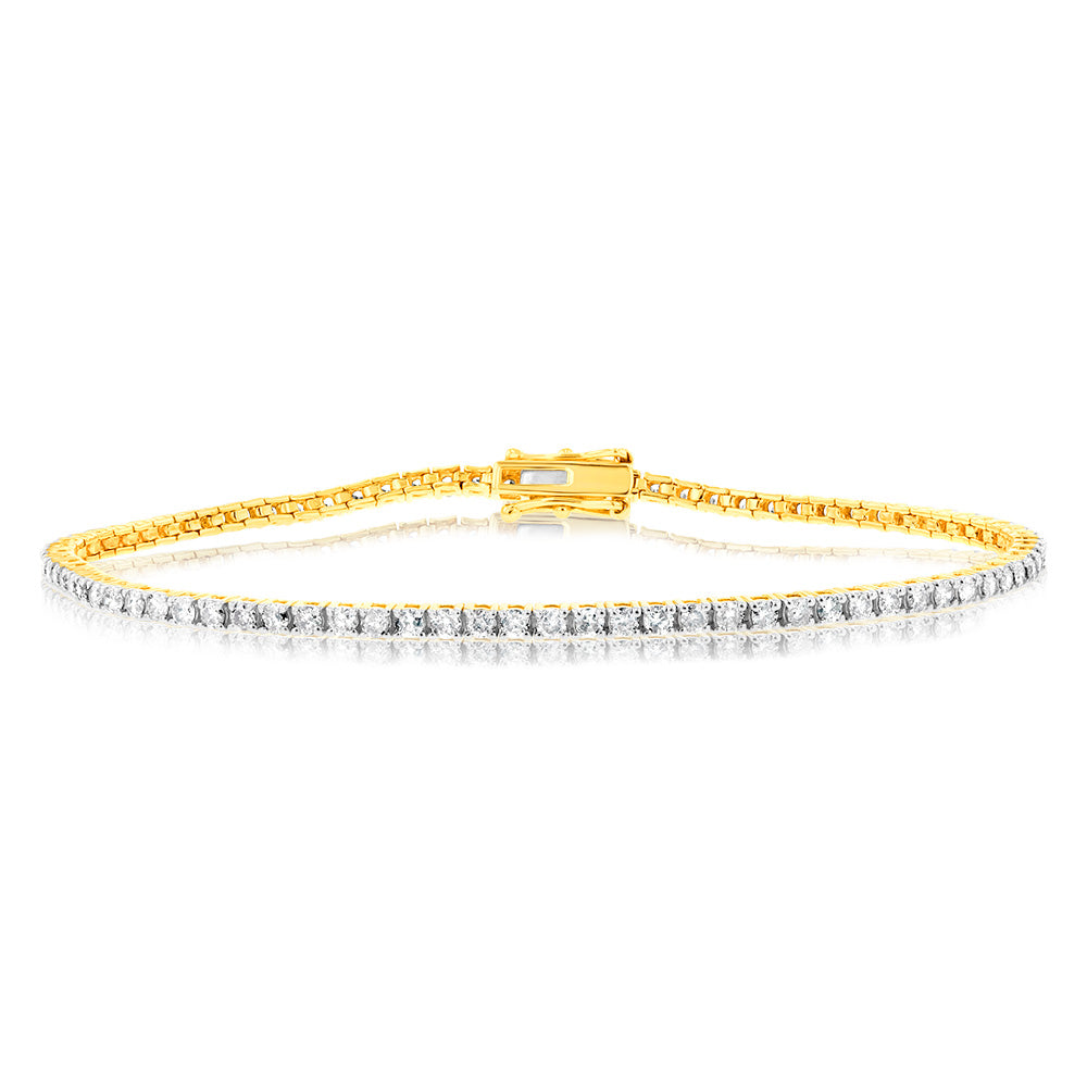 9ct Yellow Gold 2 Carat Diamond Tennis Bracelet with 82 Brilliant Diamonds