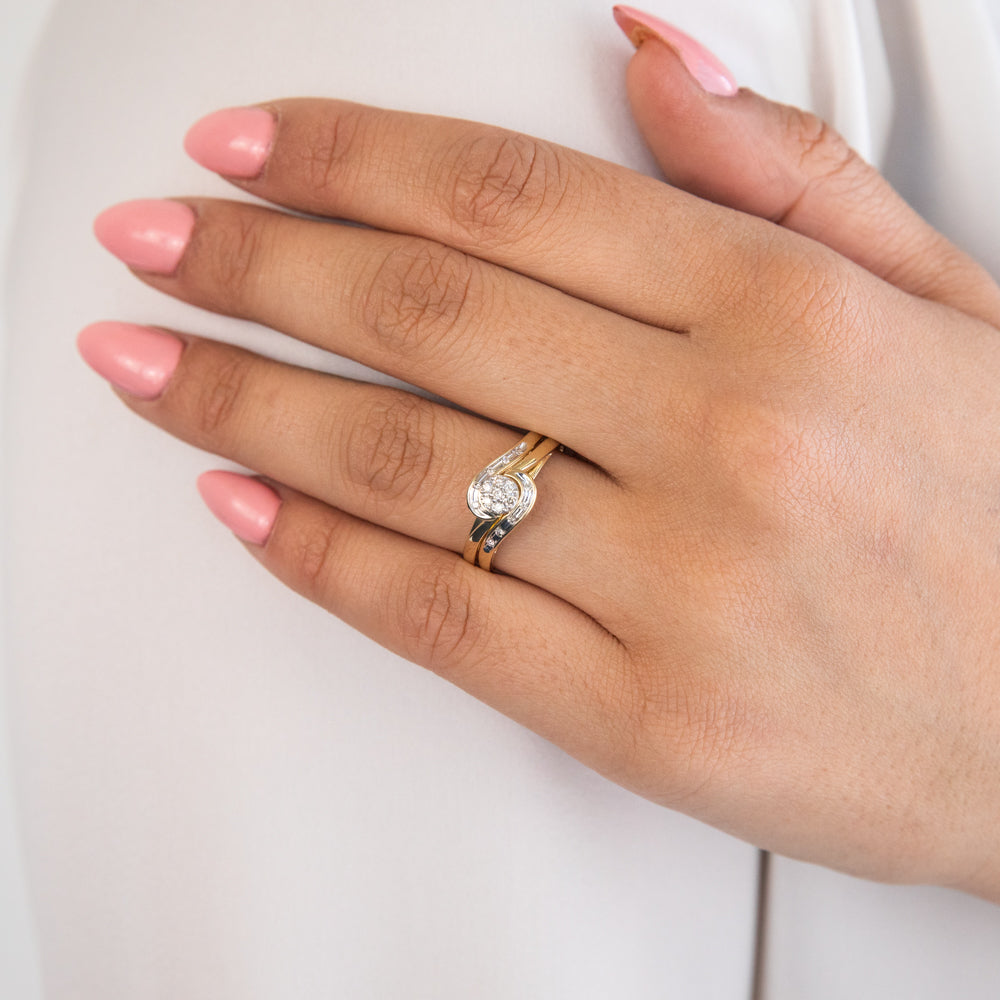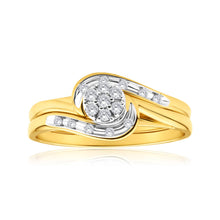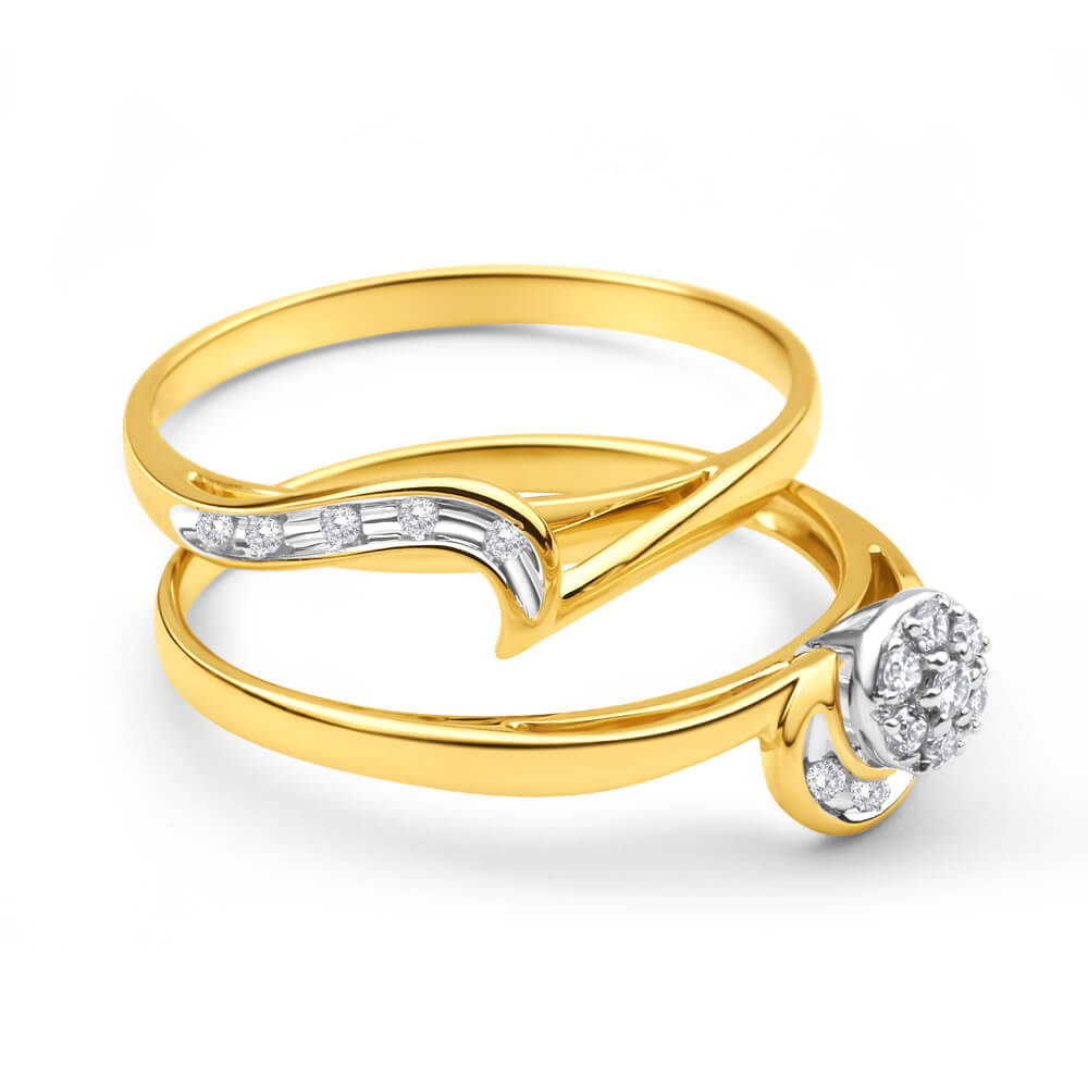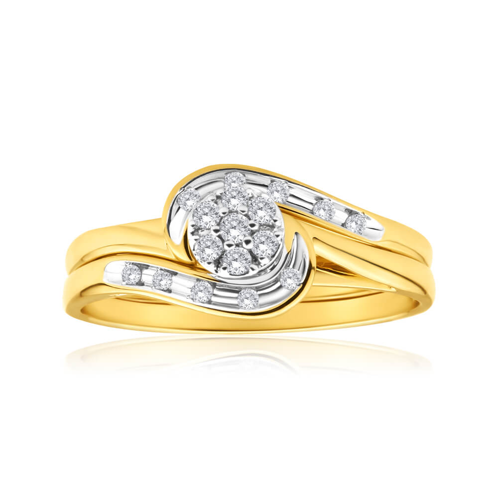 9ct Yellow Gold 2 Ring Bridal Set With 0.15 Carats Of Light Champagne Diamonds