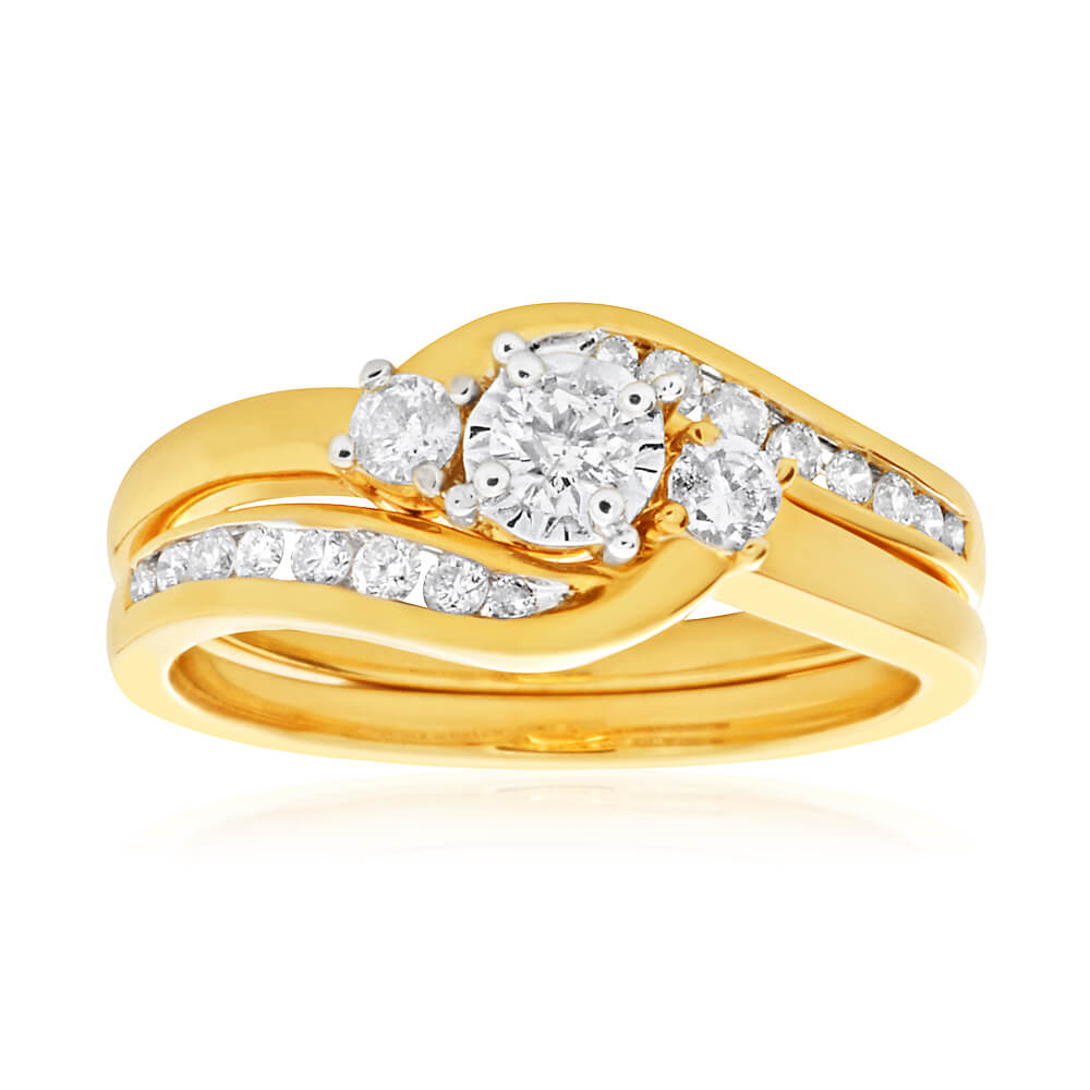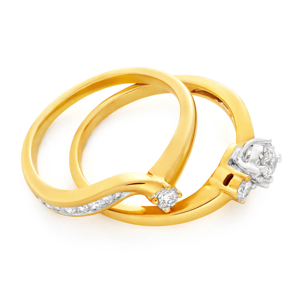 9ct Yellow Gold 2 Ring Bridal Set With 19 Diamonds Totalling 1/2 Carat