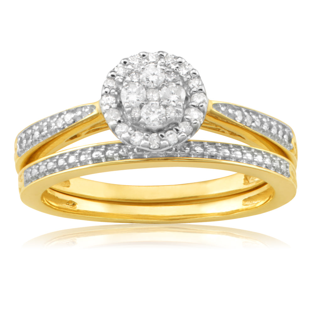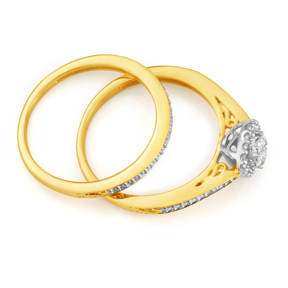 9ct Yellow Gold 2-Ring Diamond Bridal set with 1/5 Carat of Diamonds