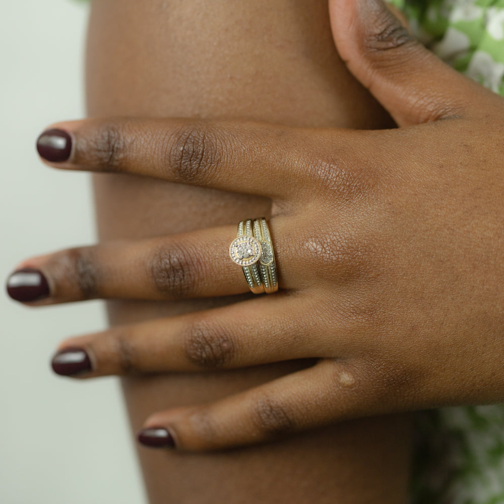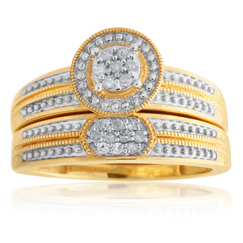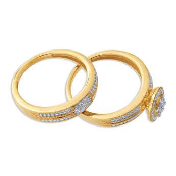 9ct Yellow Gold 2-Ring Diamond Bridal set with 17 Diamonds