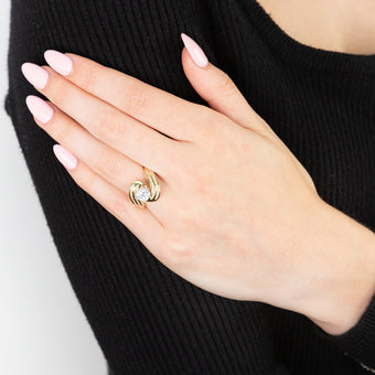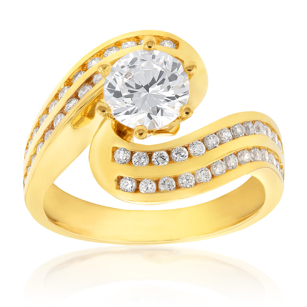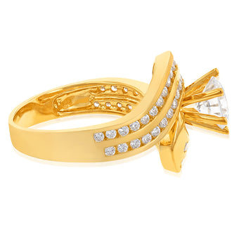 9ct Yellow Gold 2 Row Cubic Zirconia Twist Solitaire Ring