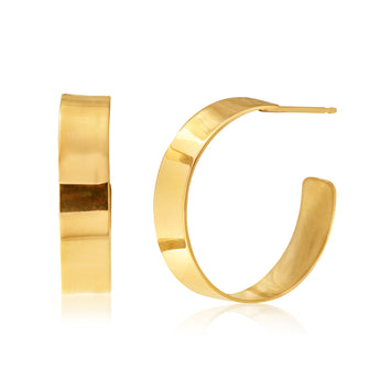 9ct Yellow Gold 20mm Flat Half Hoop Earrings