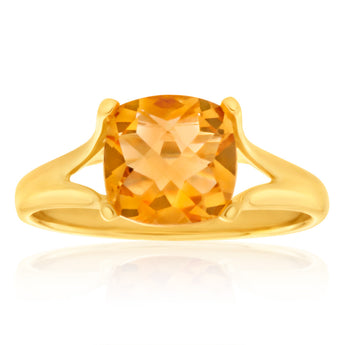 9ct Yellow Gold 2ct Cushion Cut Citrine Ring