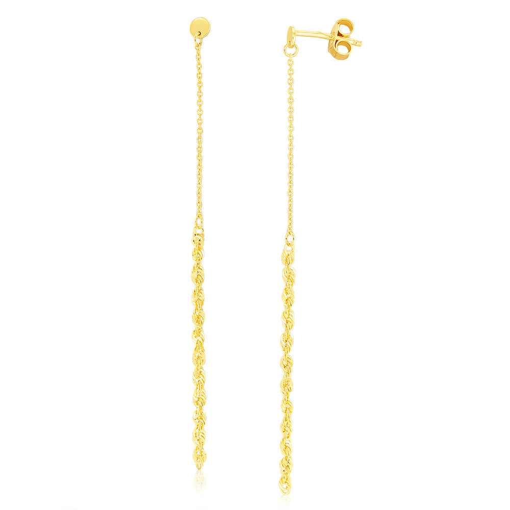 9ct Yellow Gold 2mm Rope & Trace Chain Drop Earrings