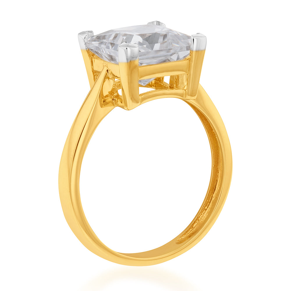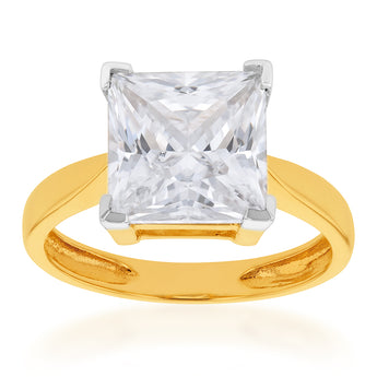 9ct Yellow Gold 3.00ct Diamond Equivalent 9.5mm Princess Cut Zirconia Solitaire