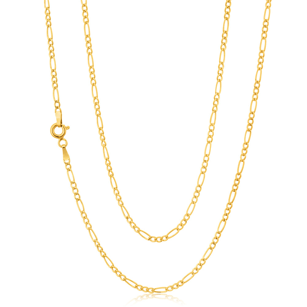 9ct Yellow Gold 3:1 Figaro 45cm Chain 50Gauge