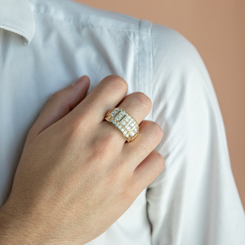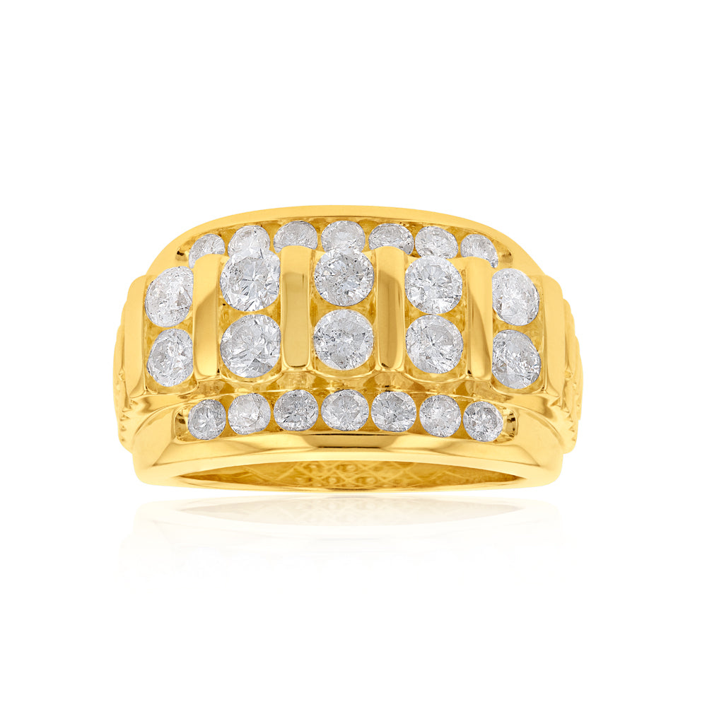 9ct Yellow Gold 3 Carat Diamond Mens Ring