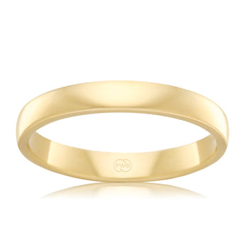 9ct Yellow Gold 3mm Classic Barrel Ring. Size N