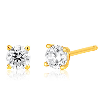9ct Yellow Gold 3mm Cubic Zirconia Brilliant Cut Stud Earrings
