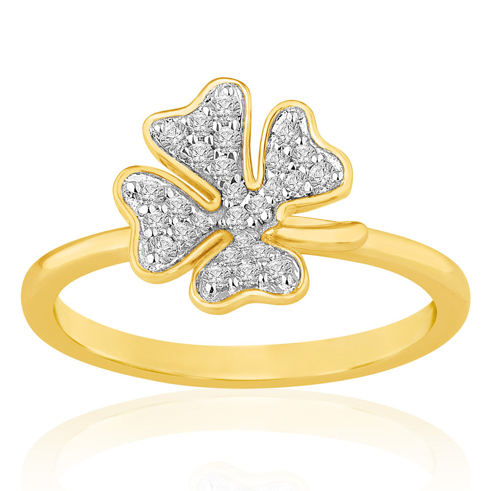 9ct Yellow Gold 4 Leaf Clover Diamond Ring