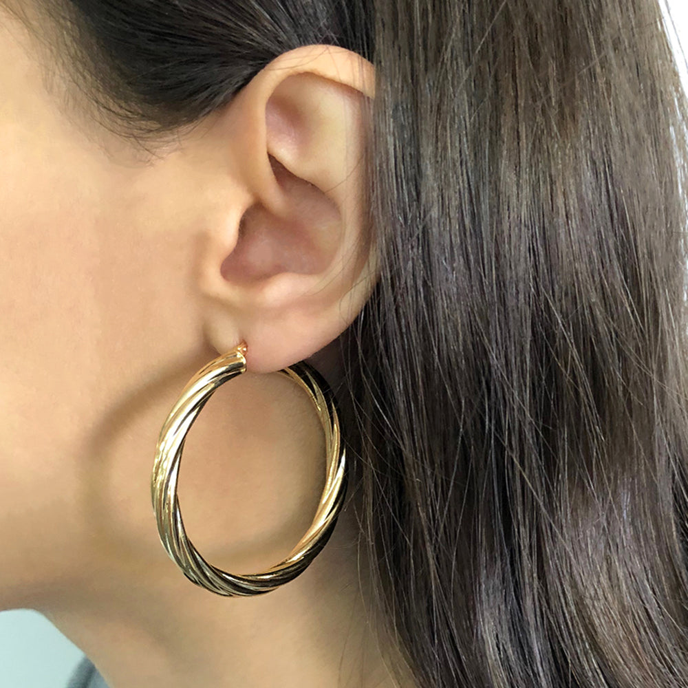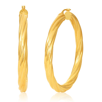 9ct Yellow Gold 40mm Twisted Striped Hoop Earrings 9Y