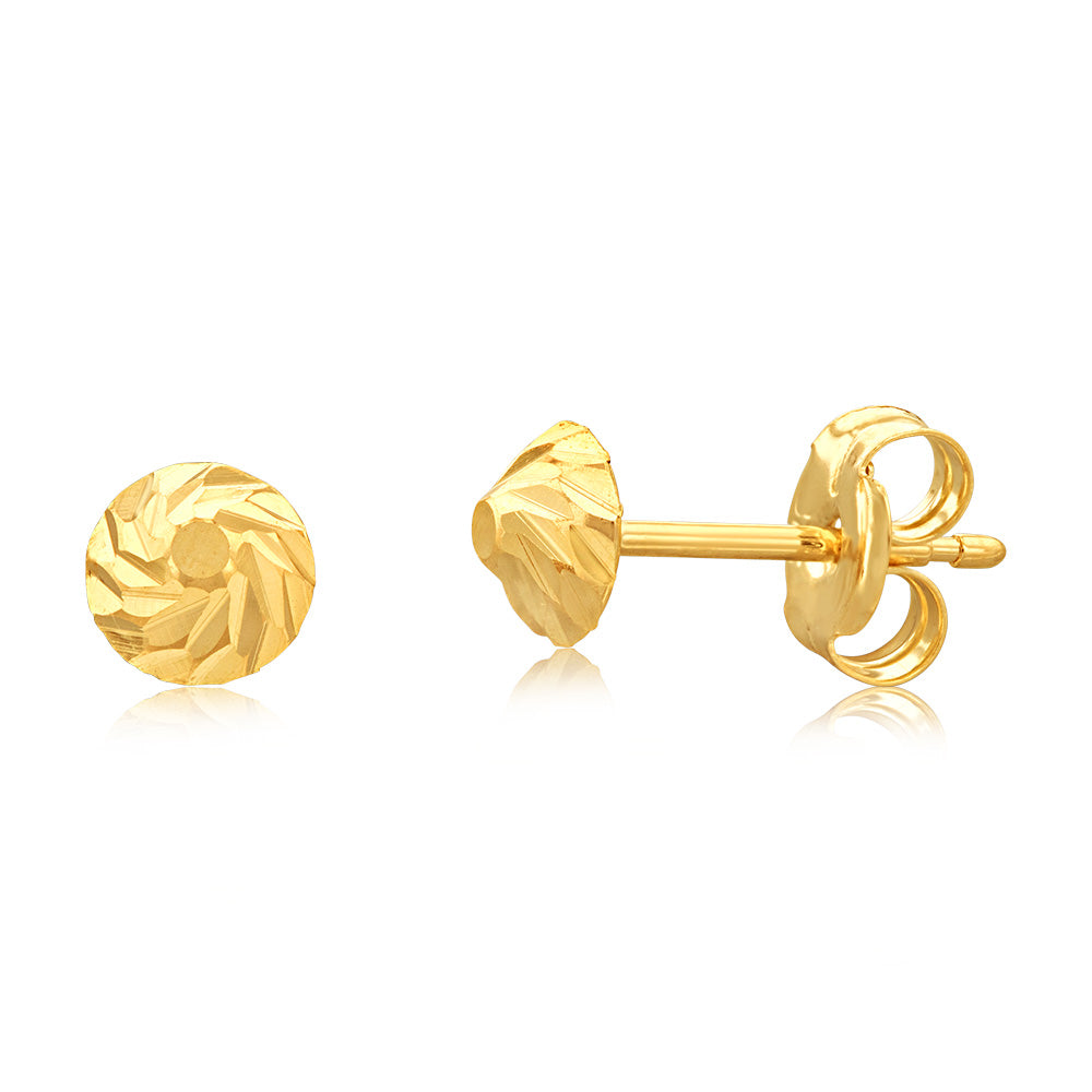 9ct Yellow Gold 4mm Carved Cone Stud Earrings