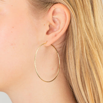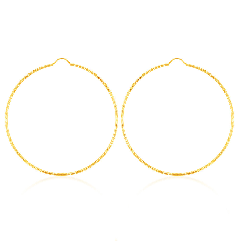 9ct Yellow Gold 50mm Diamond Cut Hoop Earrings