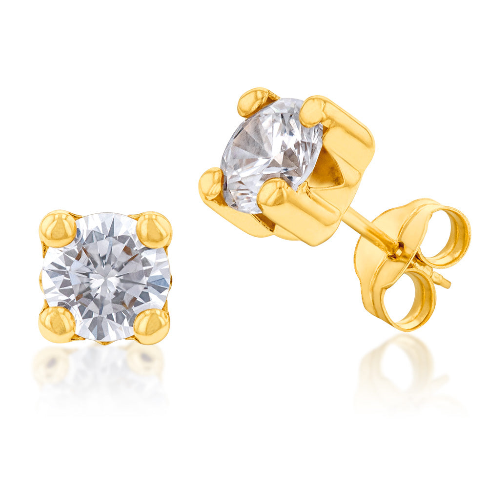 9ct Yellow Gold 5mm 4 Claw Zirconia Studs