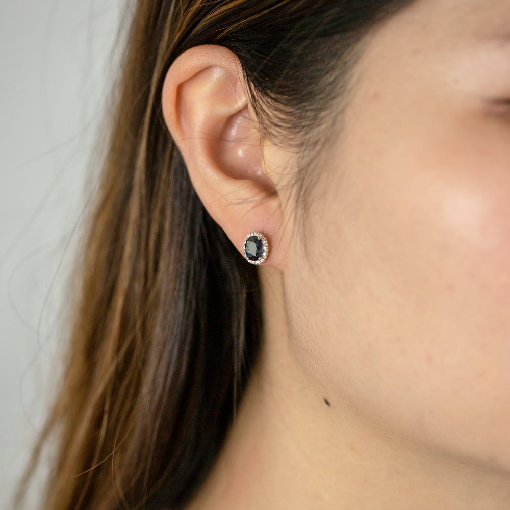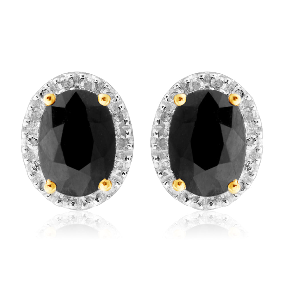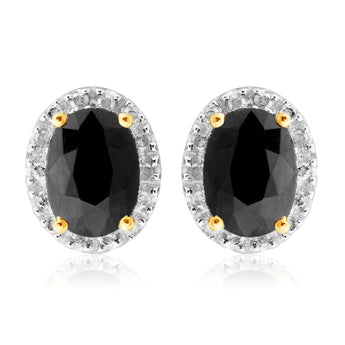 9ct Yellow Gold 5X7mm Oval Cut Natural Sapphire and 0.14 Carat Diamond Stud Earrings