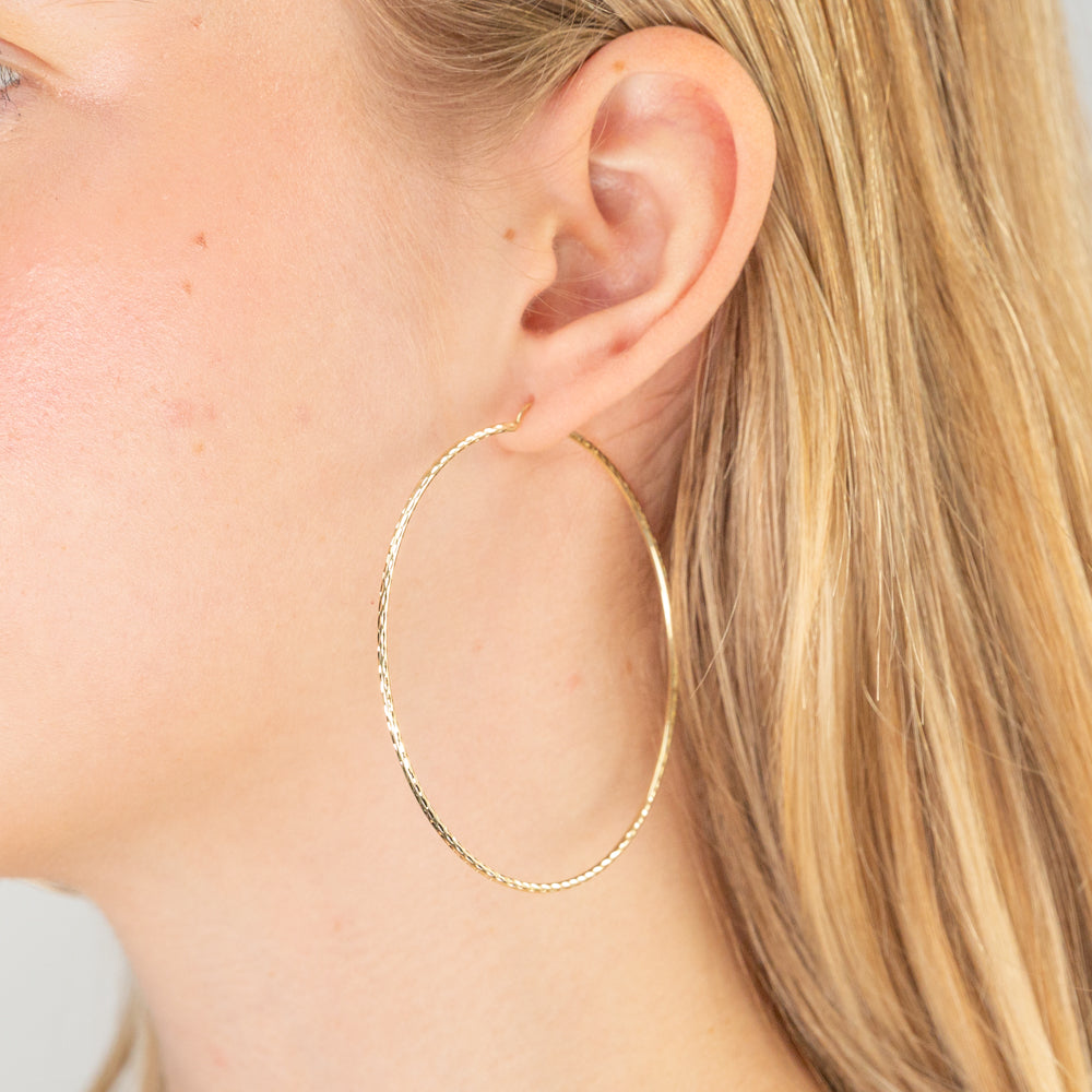 9ct Yellow Gold 60mm Diamond Cut Hoop Earrings