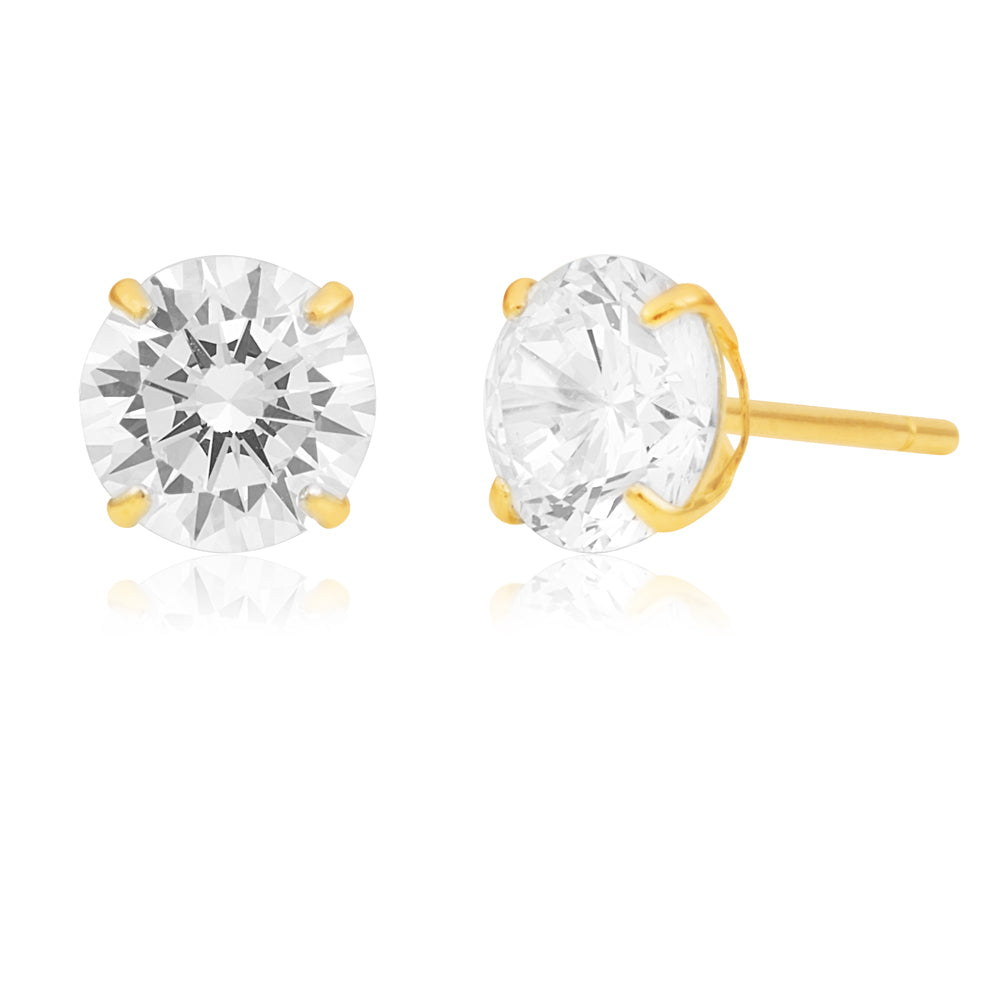 9ct Yellow Gold 6mm Brilliant Zirconia Studs