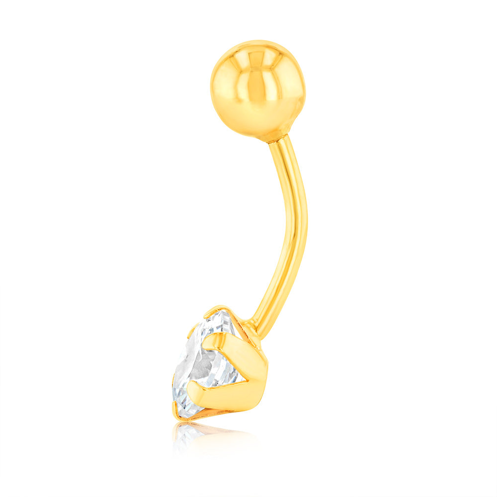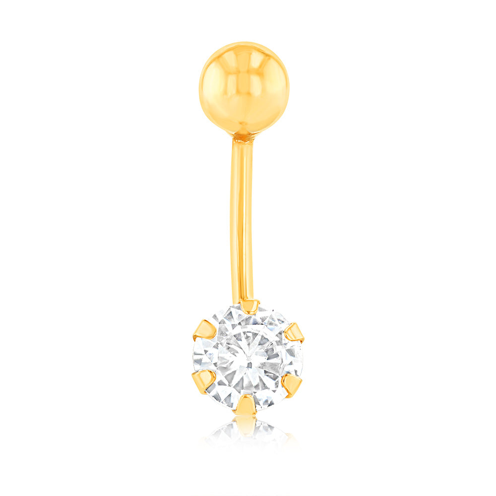 Cubic Zirconia Belly Bar in 9ct Yellow Gold
