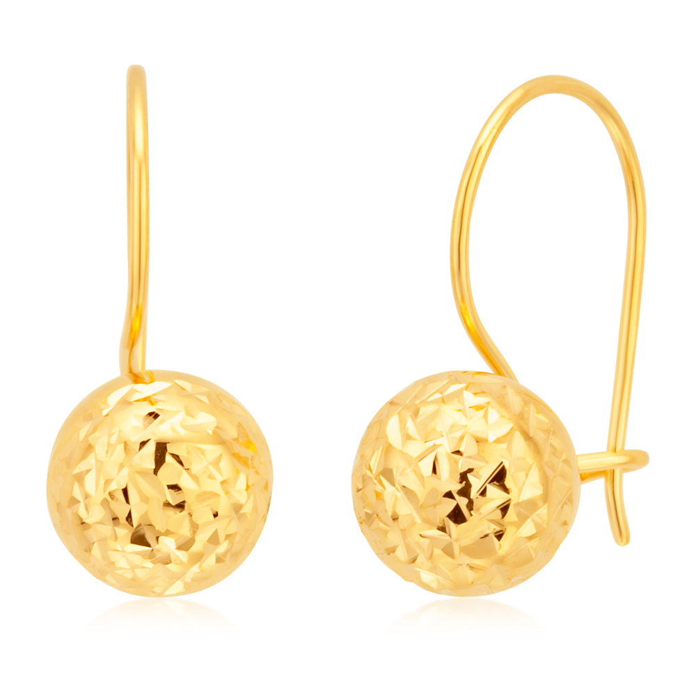 9ct Yellow Gold 7mm Diamond Cut Euroball Earrings