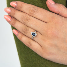 9ct Yellow Gold 1ct Natural Sapphire and 1/5 Carat Diamond Pear Halo Ring