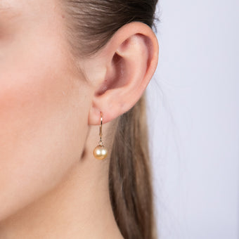 9ct Yellow Gold 8-9mm Golden South Sea Pearl Drop Earrings