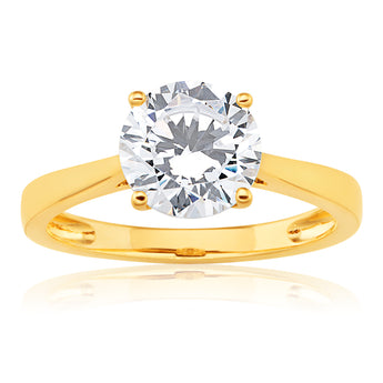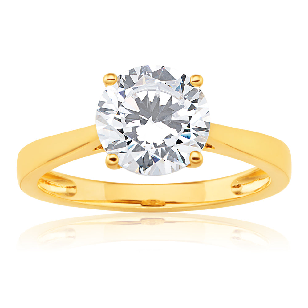 9ct Yellow Gold 8mm Zirconia Brilliant Cut Solitaire Ring