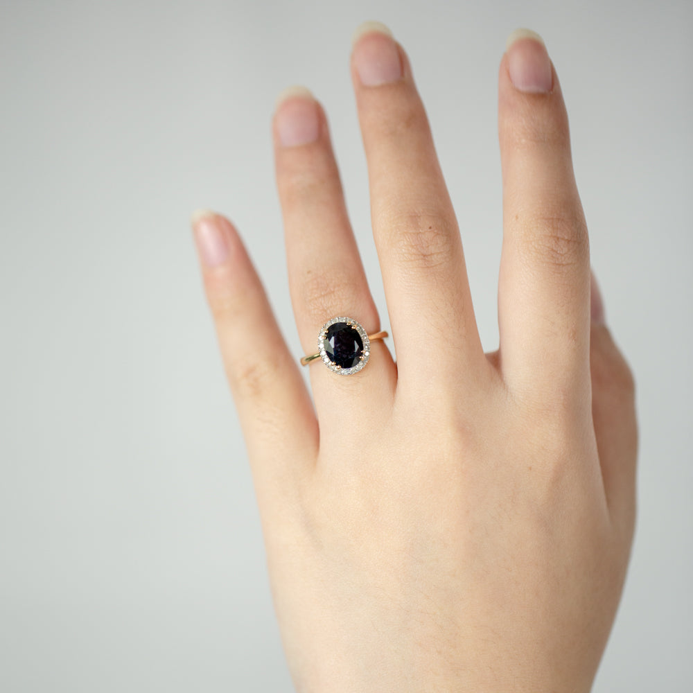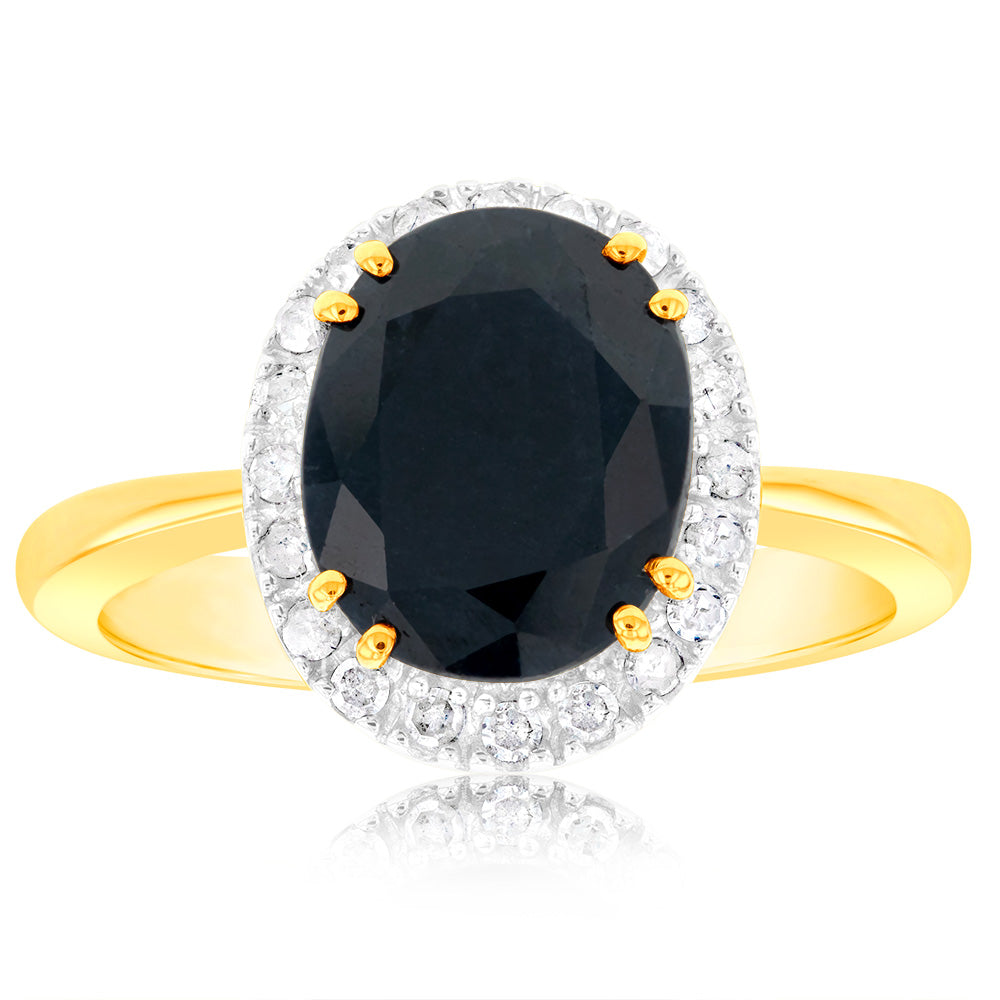 9ct Yellow Gold 8X10mm Oval Cut Natural Sapphire and Diamond Ring