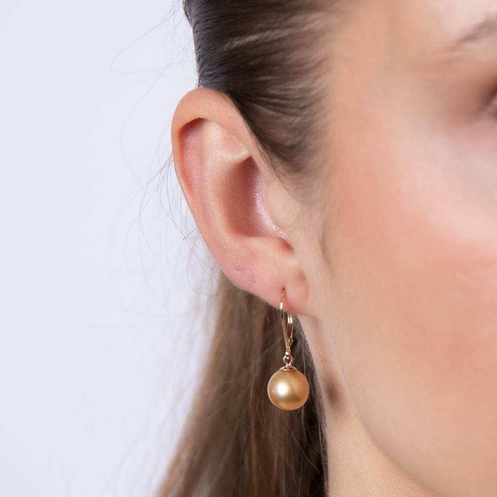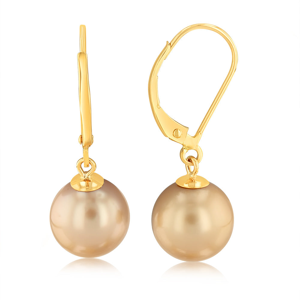 9ct Yellow Gold 9-10mm Golden South Sea Pearl Drop Earrings