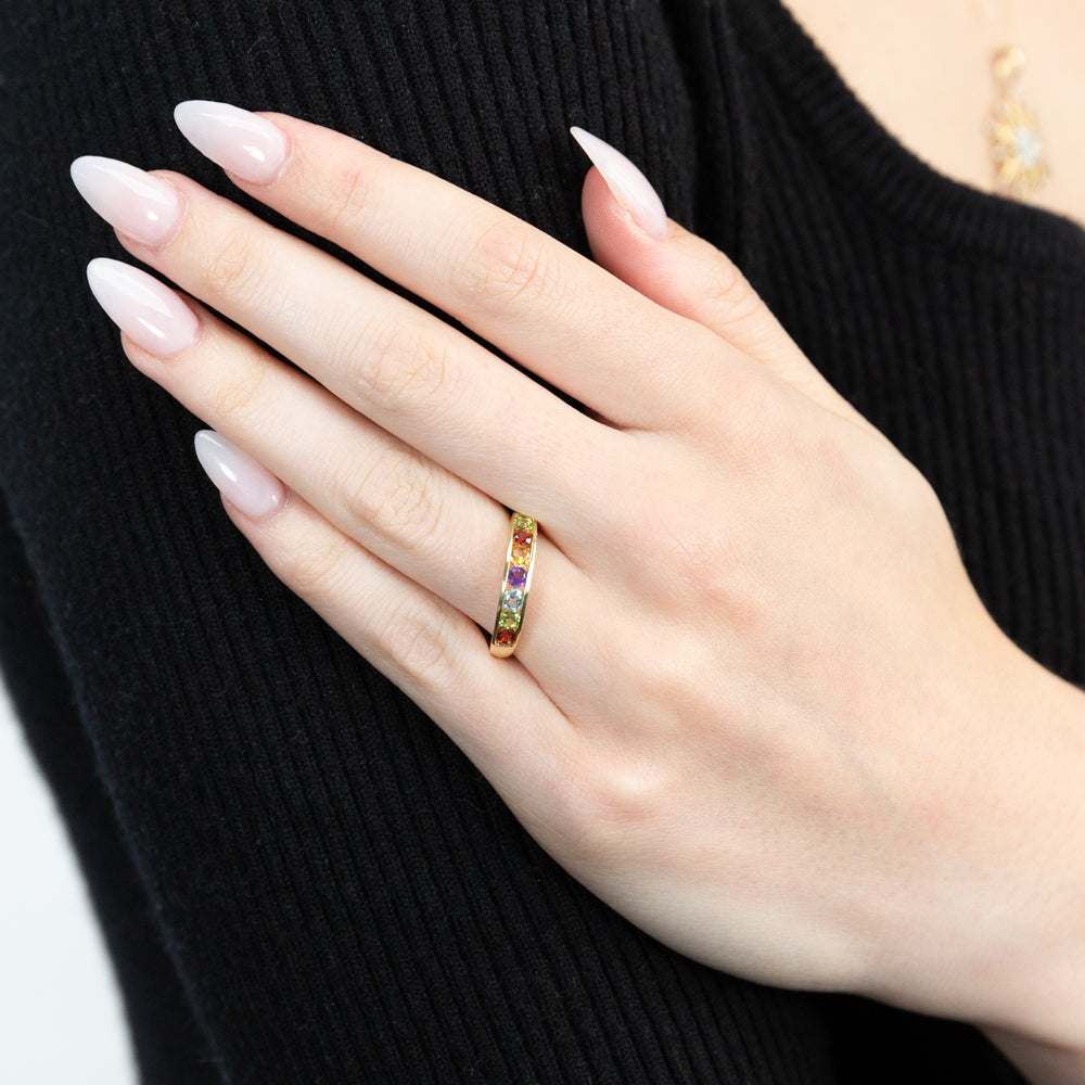 Amethyst , Blue Topaz, Citrine, Garnet and Peridot Ring in 9ct Yellow Gold