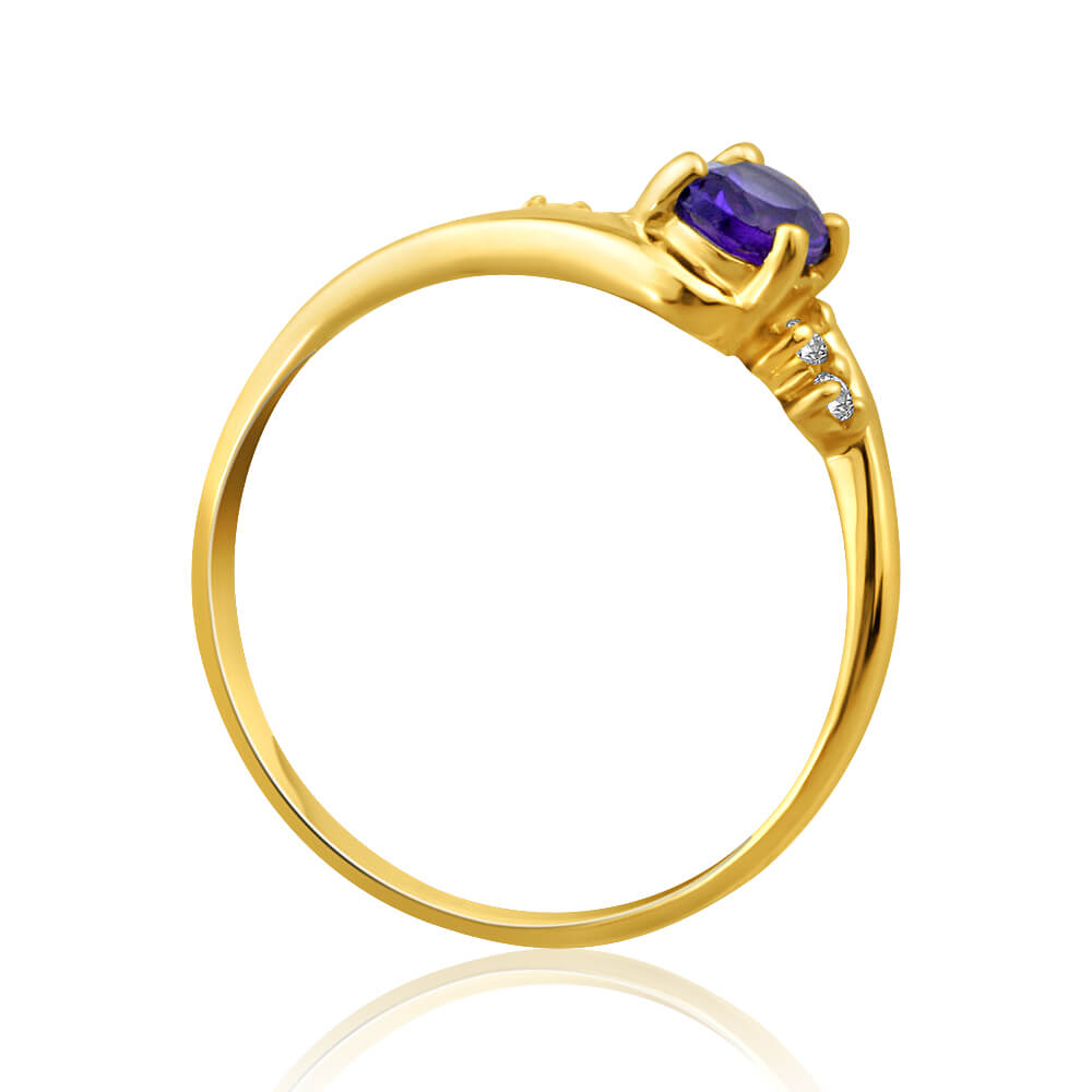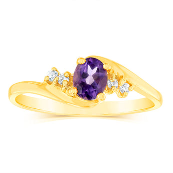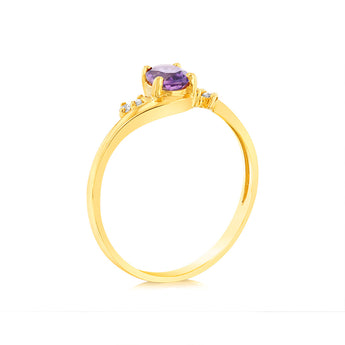 9ct Yellow Gold Amethyst + Cubic Zirconia Swirl Ring