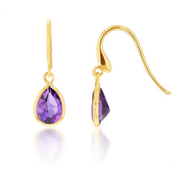 9ct Yellow Gold Amethyst Pear Drop Earrings