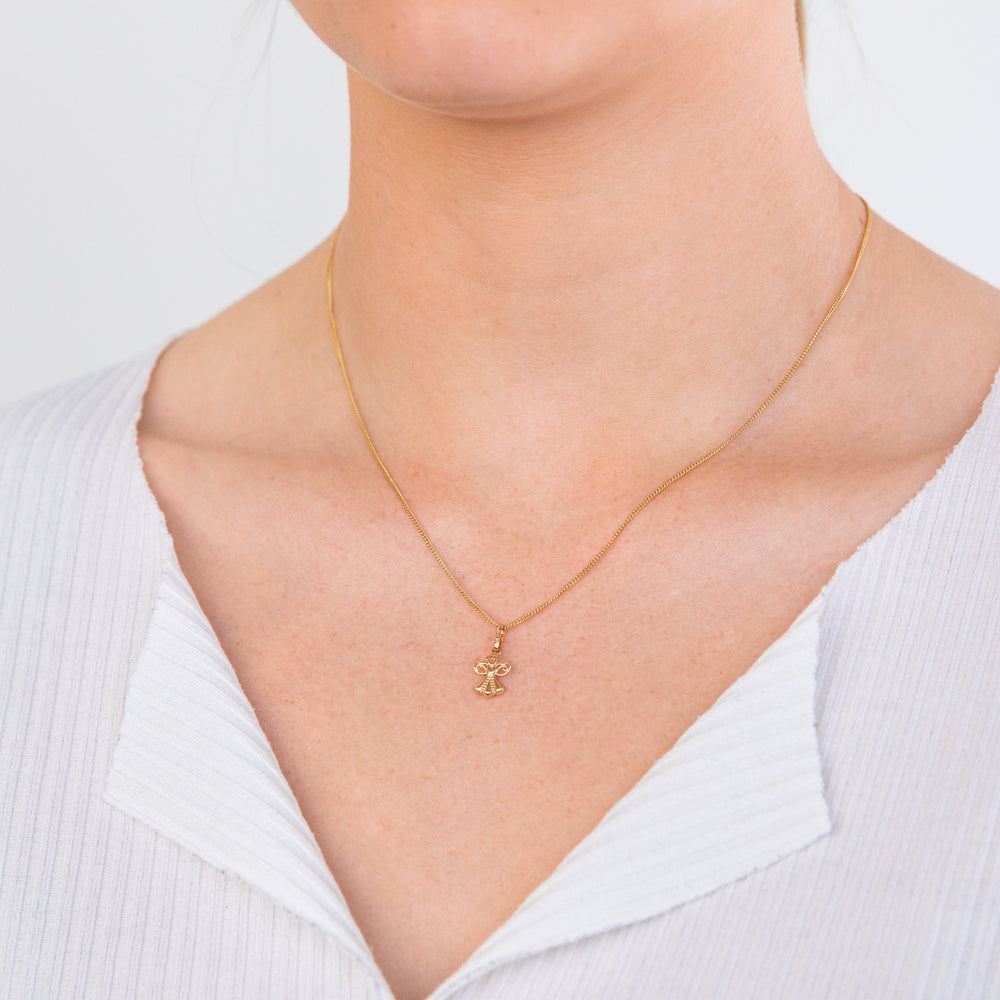 A beautiful 9ct Yellow Gold Angel Pendant with open wings and wonderfully detailed appearance. Perfect for those who love the symbolism of an angel, or feel in need of guidance and protection. Embellished with gold swirls and breathtaking with its shine and lustre, this pendant is a stunning piece of jewellery.