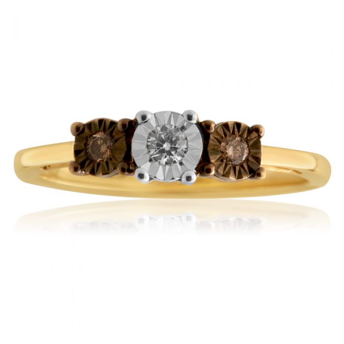 9ct Yellow Gold Australian Champagne Diamond Ring with 2 Brilliant White Diamonds