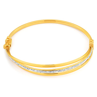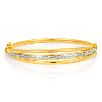 9ct Yellow Gold Bangle 65mm With Stardust Enamel Feature
