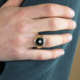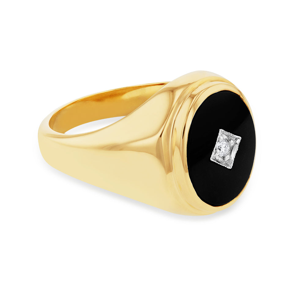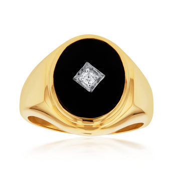 9ct Yellow Gold Black Onyx and Diamond Gents Ring
