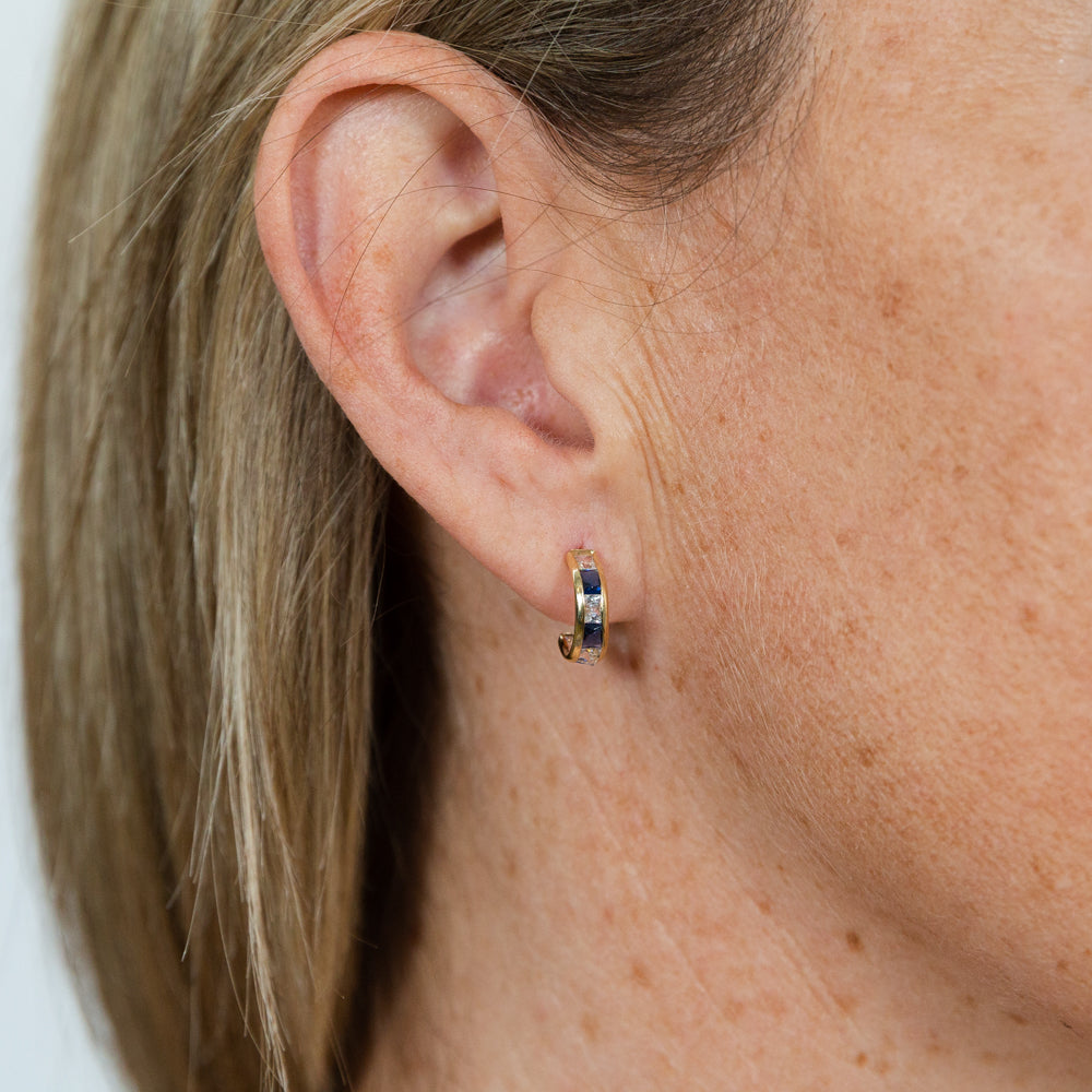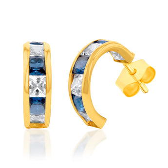 9ct Yellow Gold Blue and White Zirconia Half Hoops