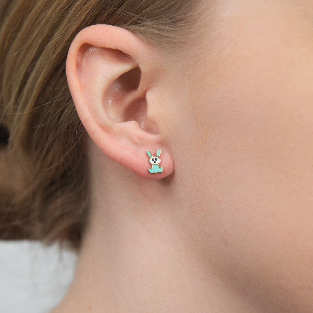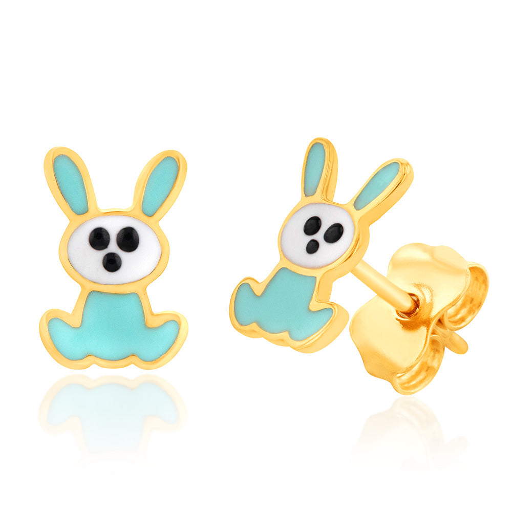 9ct Yellow Gold Blue Rabbit Stud Earrings