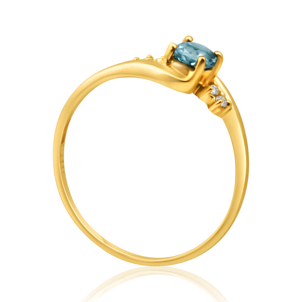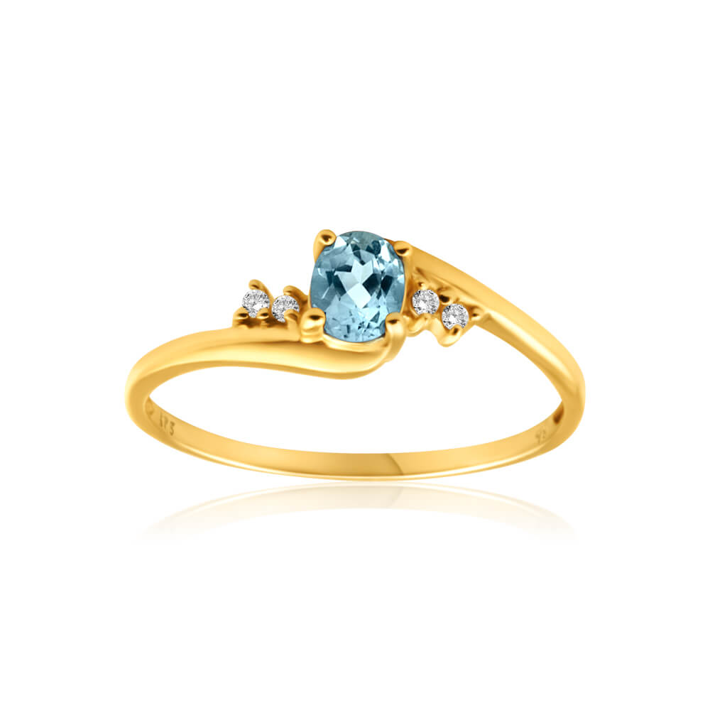 9ct Yellow Gold Blue Topaz + 4 Cubic Zirconia Ring