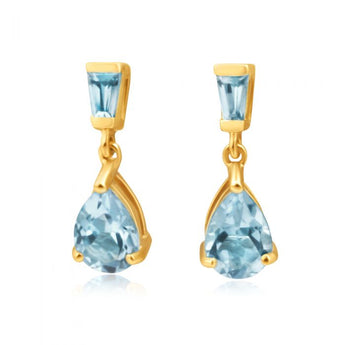 9ct Yellow Gold Blue Topaz Drop Earrings