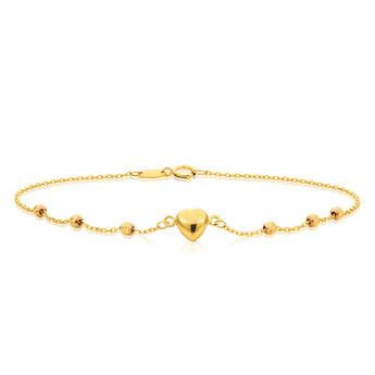 9ct Yellow Gold Bracelet 19cm With Heart Charm