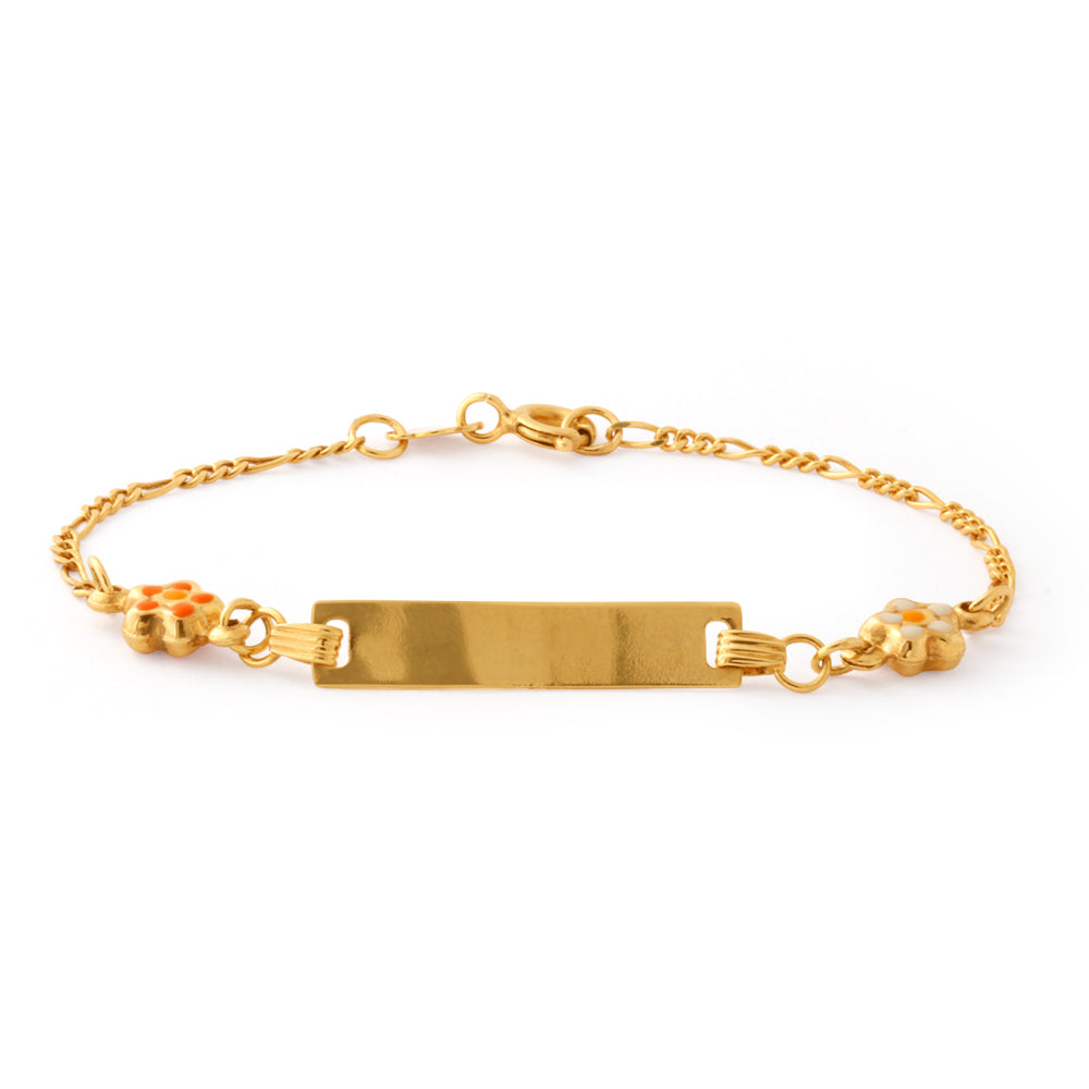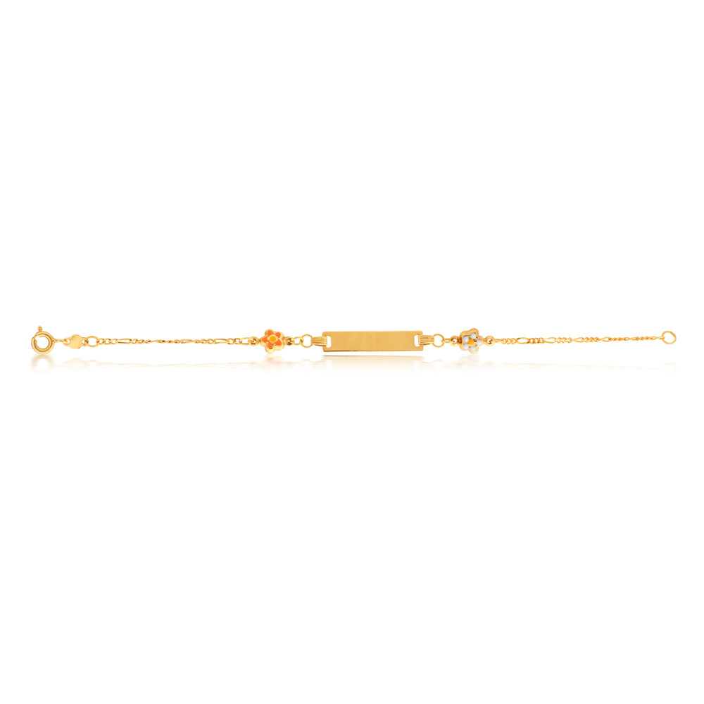 9ct Yellow Gold Bracelet With two Coloured Flowers 14cm